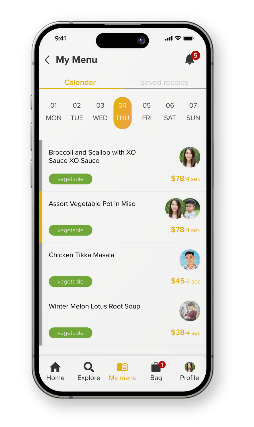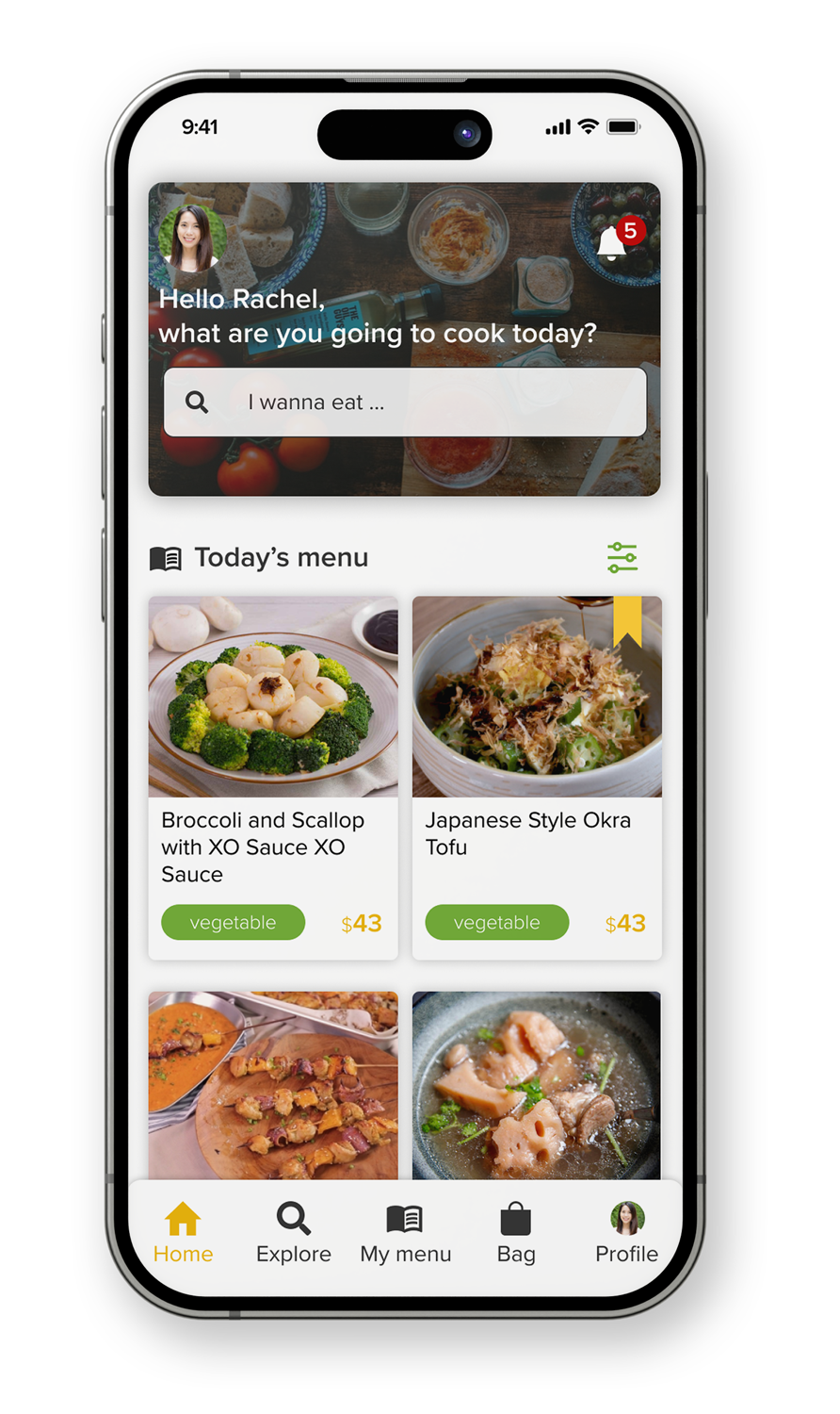 Today's Menu offers users a daily selection of curated recipes based on their preferences and saved dishes. Once users confirm their choices, ready-to-cook packages are added to their cart, simplifying meal planning and grocery shopping for a seamless cooking experience.